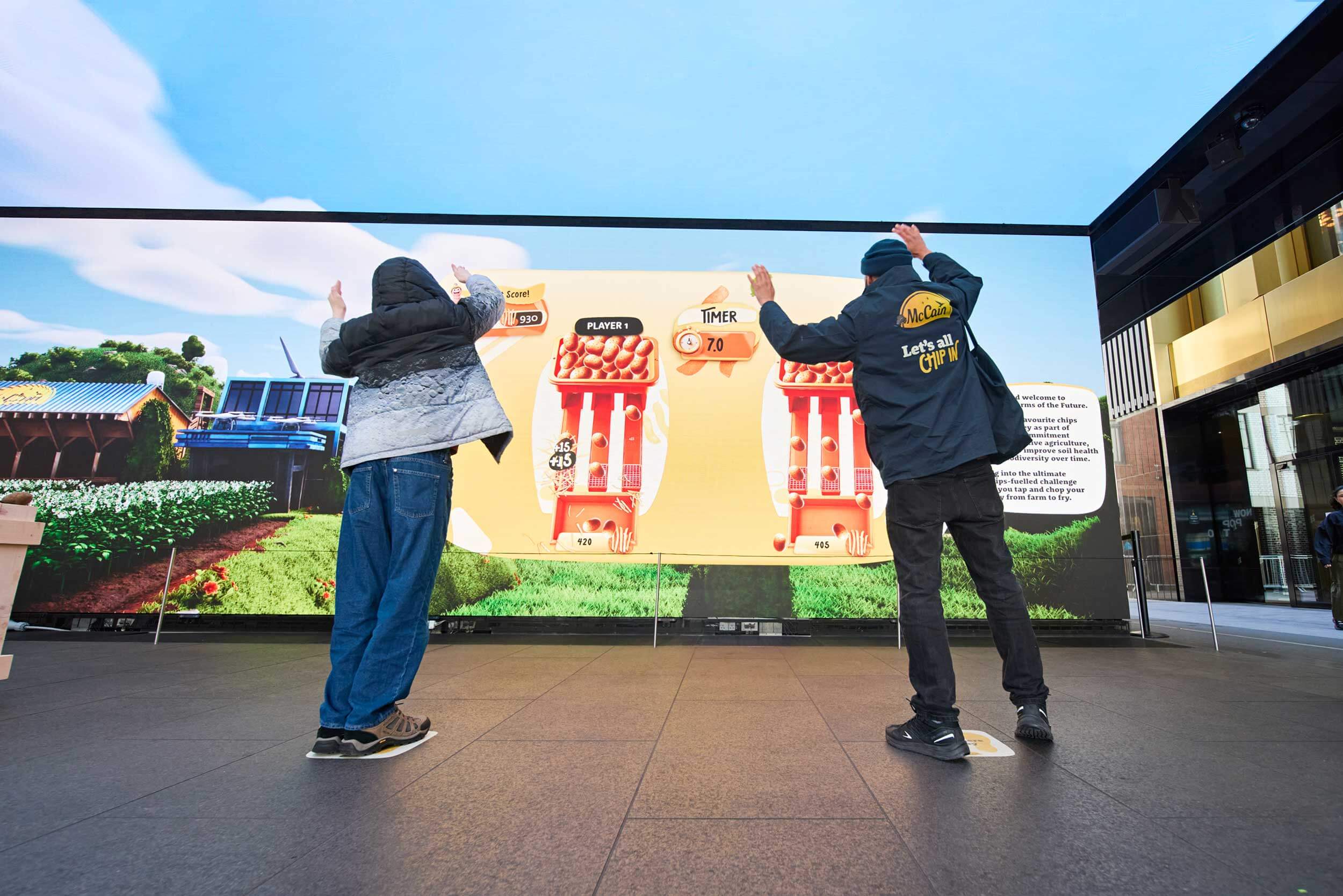 To extend the impact even further, we reimagined the experience for the digital out-of-home space in London, pulling off a full-on Outernet London takeover in collaboration with Grand Visual and PHD Media UK. From March 27th to 30th, the game was supersized into a gesture-based, two-player game that allowed users to compete side by side on massive immersive screens—turning McCain’s sustainability message into a high-energy, shared moment in one of London’s busiest public venues.